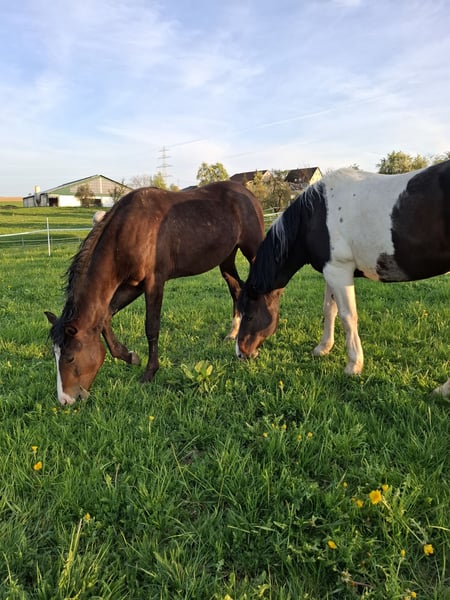 Sprzedajemy co roku konie Mustang x Mustang wyhodowane w Niemczech. Są dobrze socjalizowane, prowadzone na kantarze, znają podstawy szkolenia i więcej. Ceny od 5500 € za źrebię, w zależności od koloru, jako odsadki. Dostępne są również starsze konie, z lub bez szkolenia! Cena zależy od poziomu wyszkolenia i wieku. Oferujemy nasze ogiery do krycia naturalnym porodem również dla stut z innych hodowli na zapytanie! Zapewniamy miejsca na odchów dla Twojego źrebięcia, które kupisz u nas! Ogiery będą później wykorzystywane do krycia. Hodowla w stadzie na pastwisku z codziennym wyprowadzaniem na pastwisko. Rodzinna hodowla hobbystyczna z sercem i rozumem. www.mustangzucht.com Serdeczne pozdrowienia Rodzina Schnell z Badenii-Wirtembergii, 74635 Kupferzell