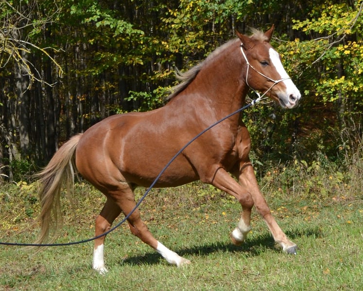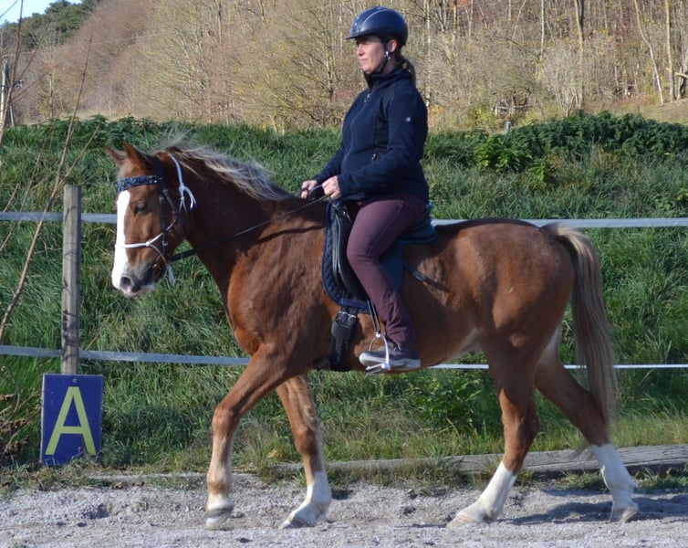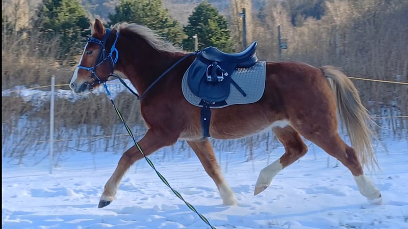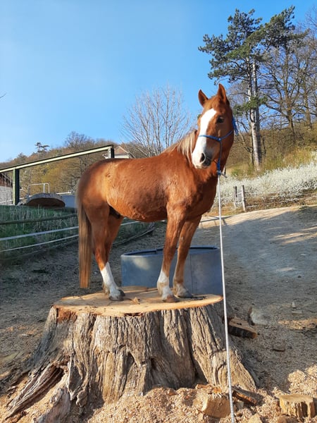 New Forest Pony Chestnut Gelding (bred by owner), 14.6 hh, 14 years old, fit, curious, and friendly. Due to health reasons, I can no longer ride and am looking for a suitable rider for Sugar. Character & Temperament - Curious, very people-oriented, friendly, and attentive - Willing to work with a lovable nature - Easygoing in daily handling - Middle-ranking in the herd, social and compatible - Farrier- and loading-friendly Health & Care - In excellent condition - Barefoot his entire life (front hoof boots available) - Regularly vaccinated and dewormed - Currently kept in an open stable (box stall kept only temporarily for courses) - Sugar is easy to feed (currently fed hay three times daily) Training - Very sensitive in groundwork and liberty work (as a Natural Horsemanship trainer, I emphasize lightness in horse handling) - Lunging, double lunge - A-level dressage - Sideways movements in walk and trot at the hand and under saddle - Circus tricks (lying down, Spanish walk) - Parelli-style groundwork, hand-led riding - Trail riding alone and in groups (sure-footed and reliable outdoors) - Great jumping potential (see photo from the fox hunting course 2020), both parents successful in eventing Suitable for whom? - A horse person who appreciates a well-trained horse in groundwork and liberty work - An experienced, calm rider who enjoys a lively, well-behaved horse and likes to go out on trails - Sugar is a pony that needs to be challenged and worked with. He has a high movement drive and is not suitable for beginners. For serious inquiries and an appropriate rider, I look forward to your message or call at 0650 823 7679. Sugar currently lives in the Vienna Woods and can be visited and test ridden there. At the beginning of the turnout season (expected early April), he will move to Salzburg.