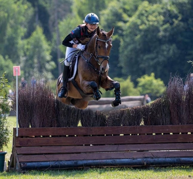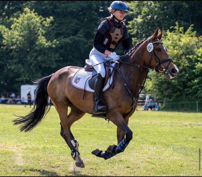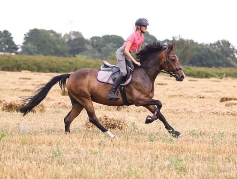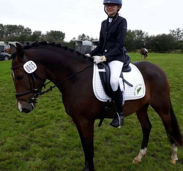 Phyllina is a 10-year-old New Forest mare. She has competed twice for the Golden Ribbon and has placings in both show jumping and dressage. She has also won multiple E-level jumping classes with 8s. Phyllina is a pony that thrives on encouragement and work. She loves to gallop through the terrain and jump over logs. She needs a confident rider who can earn her trust. A mother-child team is also a possibility we can very well imagine. We are looking for a home where she can continue to pursue her love of versatility.