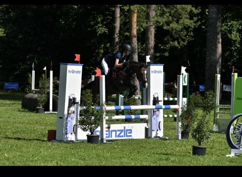 Sie hat Turniererfahrung im Springen und Dressur (Tag der Jugend).