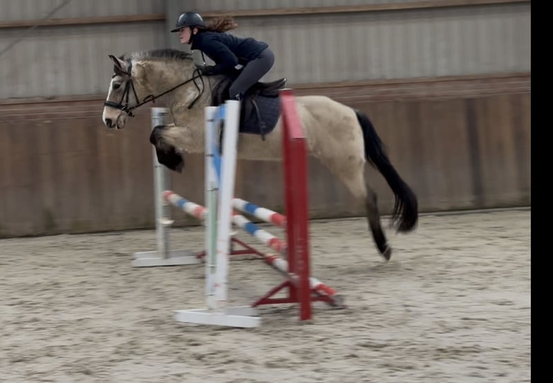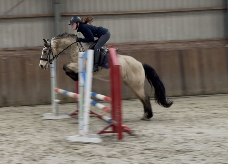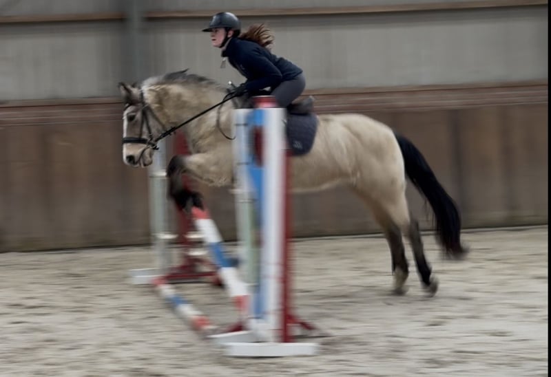 Door inruil verkregen deze schitterende D spring pony. ‘Vikki’ is een opvallend mooie D pony merrie. Ze beschikt over een mooie valk/isabelle kleur. Ze staat correct op haar benen en heeft veel body. Ze kan netjes bewegen en zeer goed springen. Ze kan een klein parcoursje rond springen. Ze heeft een frans paspoort en haar vader is een Newforest. Bij interesse graag bellen of appen op telefoonnummer: +31643197337 🌟 🎥 Een video is per whatsapp op te vragen.
