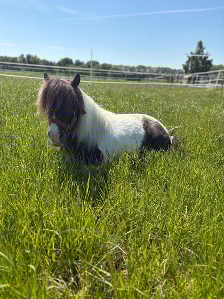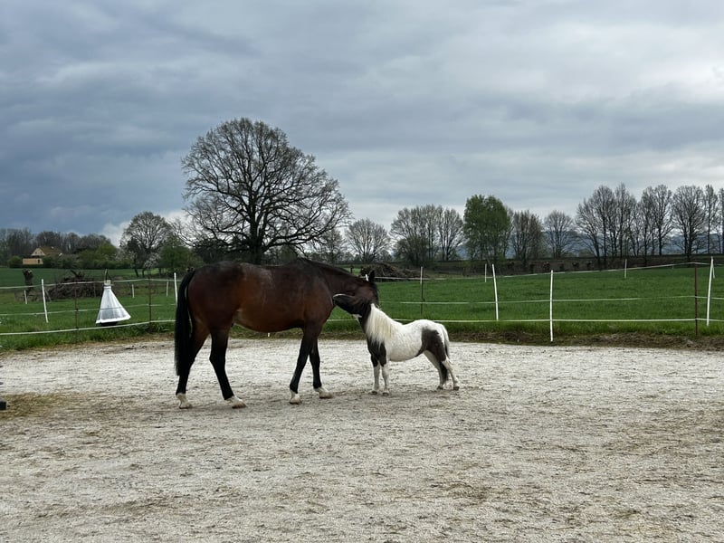 Ich muss mich schweren Herzens von meinem kleinen Bärchen Iljos’s Some Kind of Superstar, liebevoll Ily genannt, trennen und suche ein 5-Sterne-Zuhause für ihn. Aus gesundheitlichen Gründen und Zeitmangel kann ich ihm leider nicht mehr die Aufmerksamkeit und Förderung geben, die er verdient. Er wird nächstes Jahr im April 8 Jahre alt, ist ein Wallach und ca. 87 cm groß in der Farbe Smokey black bond. Seine Besonderheit: Unterschiedlich gefärbte Augen – ein echter Hingucker! ☺️ Charakterlich ist Ily ist ein liebenswerter, verschmuster und neugieriger kleiner Kerl. Zu Kindern ist er freundlich und neugierig, genießt Streicheleinheiten und ist beim geführten Kinderreiten stets brav und gelassen. Er ist außerdem sehr lernfreudig, kennt einige kleine Kunststücke und freut sich, wenn man ihm etwas Neues beibringt. Ily wurde bereits vor den Sulky gespannt und hat das souverän gemeistert. Auch Schlitten ziehen kennt er und läuft ebenso neben dem Fahrrad ohne Probleme. Bei uns lebt er im Sommer 24/7 im Offenstall und im Winter nachts in der Box. Diese Haltung tut ihm sehr gut, weshalb ich mir auch für sein neues Zuhause viel Auslauf und Gesellschaft wünsche. Vollständig geimpft, gesund, regelmäßig entwurmt, Schmiedefromm Ily wird mit komplettem Zubehör abgegeben (auch sein Geschirr + Kopfstück). Auf Wunsch kann der Sulky zusätzlich erworben werden. Mir ist es eine Herzensangelegenheit, dass Ily in liebevolle, erfahrene und fördernde Hände kommt, wo er weiterhin so umsorgt und beschäftigt wird, wie er es verdient. Bei ernsthaftem Interesse freue ich mich über eine liebe Nachricht und ein Kennenlernen.