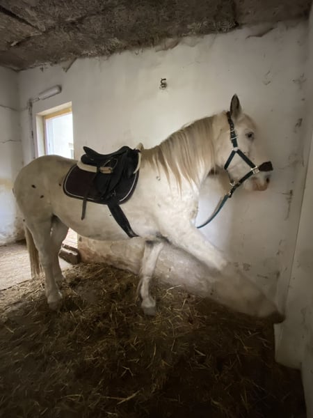 We are selling our beloved nine-year-old gelding. He is very gentle and suitable for children, as you can see in the photos. He is regularly ridden and also jumps well, but he still needs someone who can set clear boundaries and be consistent with him. He is very sweet and well-behaved. The price is so low because it is an urgent sale. He is in perfect health. Best regards, Nula