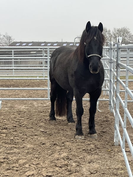 Hij is gewend aan uitloop- of weidegang en wordt niet in boxen gehouden.