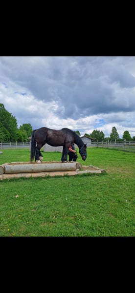 Op zoek naar een nieuw thuis voor mijn Noriker Anton (Diamant-lijn). Anton is een XL knuffelbeer met zijn 167 cm, 13 jaar oud, en is zowel in het terrein als op de piste volledig ontspannen. Hij is waarschijnlijk al aangefahren door zijn vorige eigenaar (geen garantie, ik rijd niet). Hij wordt gereden door beginners en maakt ook bij de grondwerkelijke oefeningen grote vorderingen. We gaan regelmatig op natuurtrailritten, doen schriktraining en oefenen aan de vrijheidsdressuur. Een geweldig paard dat, ondanks zijn grootte en gewicht (800 kg), graag gestimuleerd wil worden. Een klein minpuntje: hij gaat helaas niet alleen het terrein in en heeft een toevallige diagnose van artrose in een been, wat zich niet merkbaar uit. Anton staat in een open stal, beweegt graag en ik zou willen dat hij in een open stal blijft. Omdat ik de komende jaren wegens privéomstandigheden minder tijd zal hebben, moet ik mijn paardenbestand verminderen. Het is geen noodgeval, ik zoek een mooi nieuw thuis voor hem 😊