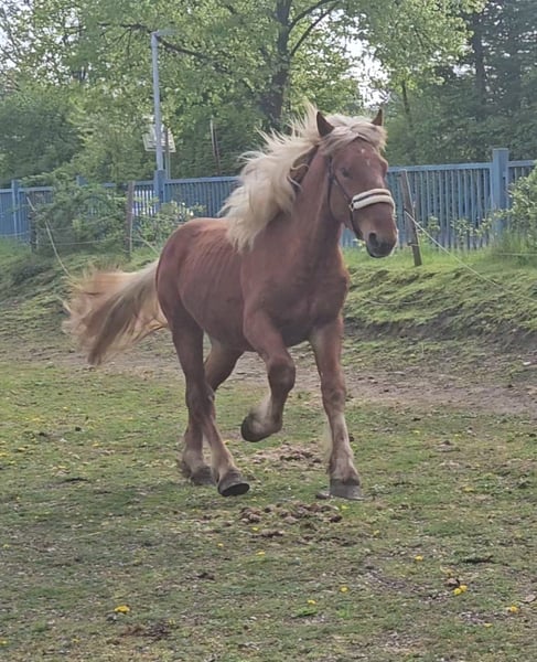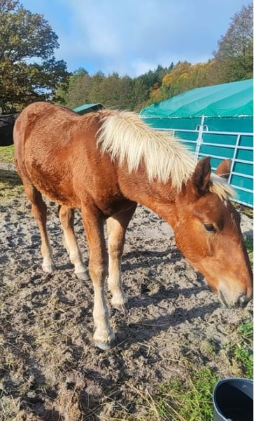 Atos, een lieve en nieuwsgierige Noriker hengst die open-minded is in overeenstemming met zijn leeftijd. Soms is hij wat onstuimig, maar hij blijft altijd vriendelijk en goedaardig. Een echt karakterpaard! Atos is een braaf en sociaal paard voor zijn leeftijd! Het feit dat hij zich laat leiden en gemakkelijk integreert in nieuwe kuddes laat zien dat hij niet alleen charmant is, maar zich ook kan aanpassen. Hij kent honden en tractoren - maar ze maken hem niet van streek. Hoefbevangenheid is nog niet zo makkelijk voor hem, maar is vaak een kwestie van wennen en oefenen. Atos heeft veel positieve kwaliteiten en zijn hoefbevangenheid zal in de loop van de tijd zeker verbeteren als hij een mens heeft gevonden die voortdurend met hem oefent. Atos zoekt zijn eigen positie in de kudde - we zouden hem daarom categoriseren als hooggeplaatst. Hij is echter altijd vriendelijk en goedaardig tegen mensen. Atos kan later een geweldige vrijetijdspartner zijn als rij- of koetspaard. Wil je Atos de wereld laten zien? Neem dan contact met ons op en misschien rent deze prachtige vos binnenkort wel met jou door de weilanden.