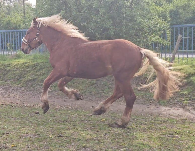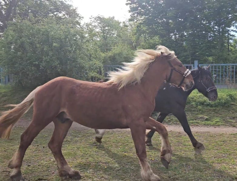 Atos, a lovely and curious Noriker stallion who is open-minded in keeping with his age. Sometimes he gets a little boisterous, but always remains friendly and good-natured. A real character horse! Atos is a well-behaved and social horse for his age! The fact that he can be led and easily integrated into new herds shows that he is not only charming but also adaptable. He knows dogs and tractors - but they don't upset him. Giving hooves is not quite so easy for him yet, but is often a matter of getting used to and practicing. Atos has many positive qualities, and his hoofing will certainly improve over time once he has found his human who practices with him continuously. Atos seeks his own position in the herd - we would therefore classify him as high ranking. However, he is always friendly and good-natured towards people. Atos can later be a great leisure partner as a riding or carriage horse. Do you want to show Atos the world? Then get in touch with us - and this wonderful chestnut could soon be running across the meadows with you.