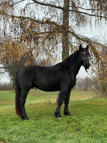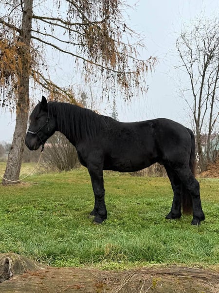 Braver, junger Noriker-Wallach (Rappe), 3 Jahre, 1.60m, angeritten, Almaufzucht. Ideal als Freizeit- und Wanderpferd. Es gibt Pferde, die man vom ersten Moment an ins Herz schließt: klar im Kopf und freundlich im Wesen. Dieser bildschöne Noriker-Wallach in Rappfarbe bringt genau das mit. Ein freundlicher Charakter und ausgestattet mit leichten Bewegungen, macht er schon jetzt beim anreiten eine sehr gute Figur. Er wird zur Zeit schonend und altersgerecht angeritten und ist dabei Mega anständig. Er wird vom Profi solide angeritten, longiert und ist brav unter dem Sattel. Durch seine Trittsicherheit geeignet für Freizeit-und Wanderreiter sowie durchaus auch für ambitionierte Freizeitreiter die mehr möchten, da er ein leichter Typ ist und schöne lockere Bewegungen mitbringt. Aufgewachsen im schönen Kärnten auf der Alm, kennt Kühe, Tourismus und alles, was sich am Berg bewegt. Bei uns hat er zusätzlich Traktoren, Hunde, Hühner und viel Weiteres kennengelernt. Er ist freundlich, aufmerksam und unkompliziert. Mit anderen Pferden geht er sehr lieb um und ist verträglich mit allen anderen Vierbeinern. Mit weiterer Ausbildung wird er der perfekter Partner für schöne Ausritte und mehr. • schmiedefromm, verladefromm • gesund, gut bemuskelt, ekzemfrei • Papiere/Zubehör: Equidenpass aus dem Original-Zuchtgebiet vorhanden. Neuer passender bequemer Westernsattel kann auf Wunsch miterworben werden. Auf der Alm lernt man Gelassenheit: Unser Noriker hat Berge, Wetter, Vieh und Trubel kennengelernt , beste Schule für ein verlässliches Freizeitpferd. Er ist freundlich und aufmerksam, lässt sich dem Ausbildungsstand entsprechend brav reiten und macht es seinem Menschen leicht, schnell Vertrauen zu fassen. Wer sich ein komfortables, hübsches Pferd mit Herz sucht, wird ihn lieben. Bei aufrichtigem Interesse rufen Sie gerne unter 01709343872 an. Auf Wunsch kann er gerne noch zur weiteren Ausbildung bleiben. Eine gute Beratung für unsere Kunden liegt uns sehr am Herzen. Daher planen Sie für einen Besuchstermin mit Vorreiten und Probereiten 1-2 Stunden ein. Für das erste Pferd berechnen wir 35€ , jedes weitere Pferd 20€. Hierfür bitten wir um Verständnis.