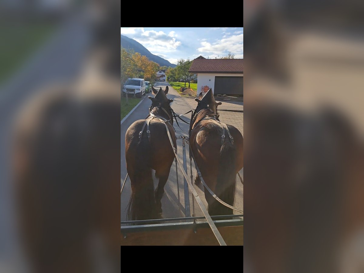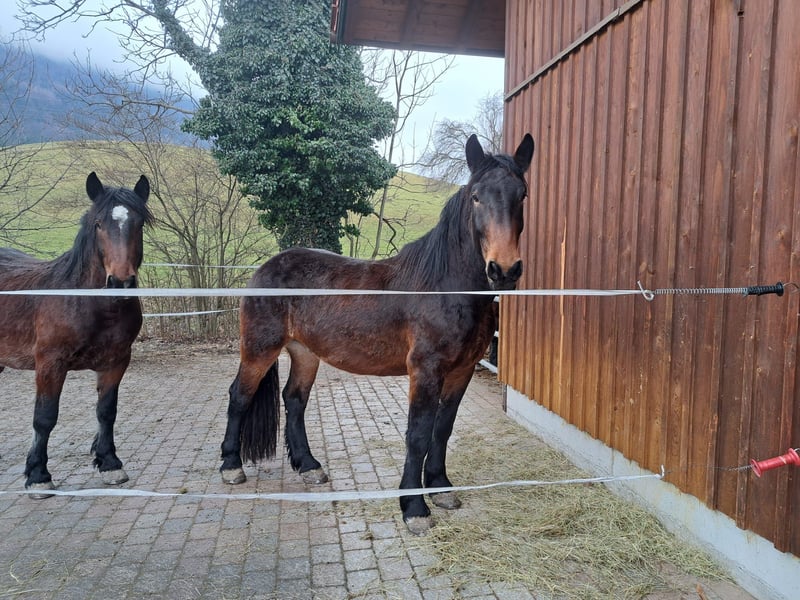 Unfortunately, we have to sell our Noriker harness team due to a reduction in our herd. Bene and Ferdl are four years old, broke to driving, and have been ridden under saddle. Last year, they participated in the Leonhardi Ride without any issues. They are calm but still young horses that enjoy frolicking outdoors. We would be happy if they found a good and caring new home. They are shoe-safe and load well, making them a truly reliable team. Bene's height: 16.1 hh Ferdl's height: 16.3 hh