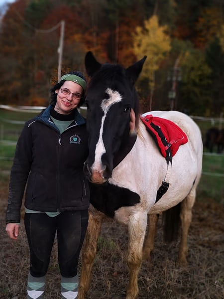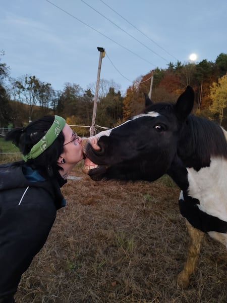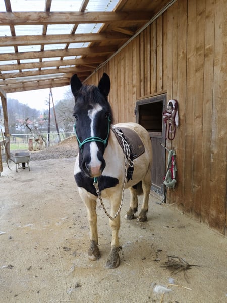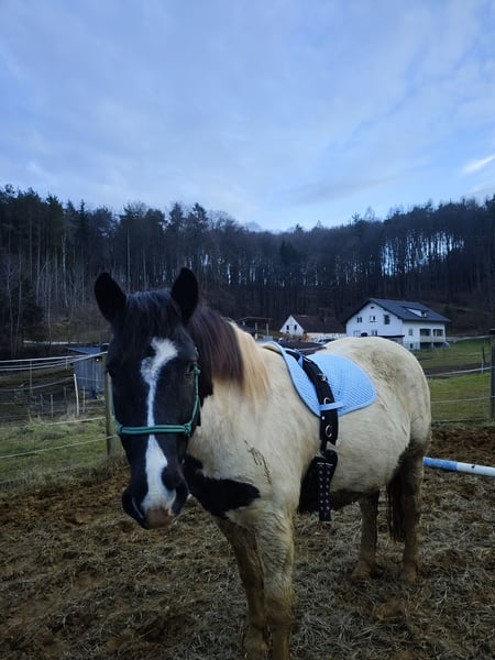 Zeus ist noch sehr jung und derzeit noch nicht eingeritten. Ich habe ihn noch nicht lange übernommen und die letzte Zeit damit verbracht, an seinem Gewicht zu arbeiten, da er sehr dick ist. Habe es geschafft schon einiges runterzukriegen.... Bin bereits einmal auf ihm gesessen, was er super brav mit gemacht hat. Er hat ein großes Herz, ist unfassbar verschmust und würde alles für seinen Reiter tun, sobald man das Vertrauen gewonnen hat.