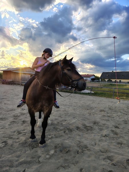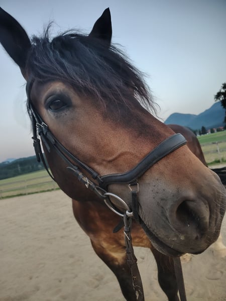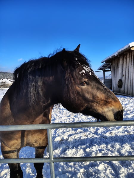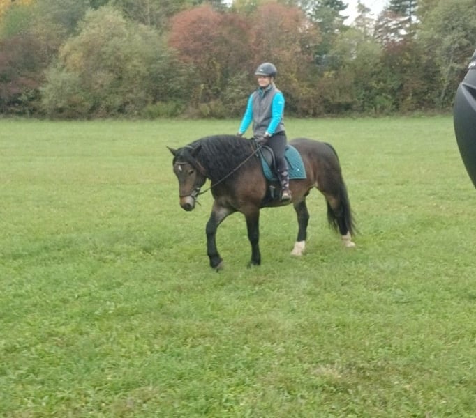 Pedro wird am 20.05. 7 Jahre jung. Habe ihn angeritten mit 4,5 Jahren gekauft, wünsche mir mittlerweile aber etwas leichteres, deshalb würde ich gerne umsteigen auf ein Warmblut. Momentan ist er auf einem soliden A-Niveau unterwegs. Er kennt freilaufende Hunde, beim Ausreiten mitlaufende Hunde, straßenverkehr ist er gewöhnt. Aber schnelle von hinten kommende Autos mag er nicht immer. Er ist ein kopfklarer Kerl, mit dem Ausreiten richtig Spass macht. Momentan ist er in der Nacht in der Box, bis vor einem Jahr war er in einem Offenstall zuhause. Er kennt Spaziergänge mit Kindern, wurde mit Kindern longiert ...und er passt immer gut auf, auf seine Passagiere. Er springt auch sehr gerne, im letzten Jahr hatte ich aber weniger Möglichkeiten dafür. Er wird aber mind. 2x im Monat mit Dressur Training gymnastiziert. Kann Seitengänge, reagiert sehr fein auf die Hilfen und möchte gefallen. Er geht in der Gruppe in jeder Position, aber am meisten sind wir momentan alleine unterwegs. Er hatte noch nie einen Beschlag, wir waren aber schon über 20 km beim Ausreiten unterwegs. Er ist sehr vielseitig einsetzbar. Weiters hat er eine wunderschöne Farbe...im Winter eher dunkel - im Sommer sieht er zum Teil richtig schön - fast buckskin Farben aus. Er wird regelmäßig dem Schmied vorgestellt. Zähne wurden im September gemacht. Im Oktober wurde er gewogen - da brachte er 750 kg auf die Waage. Näheres gerne per pn