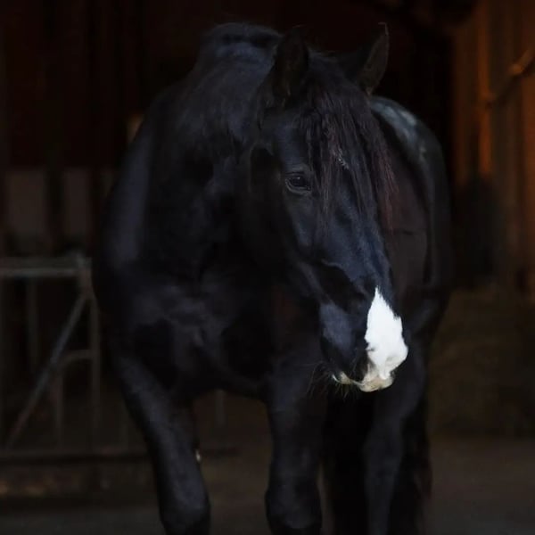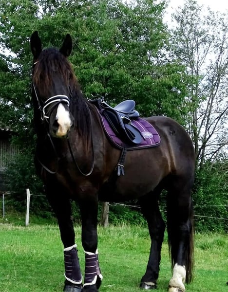 Je propose ici à la vente mon hongre Noriker, né en 2017, en raison de ma maladie de rhumatisme. Socke mesure 172 cm au garrot et pèse 877 kg. Il a plutôt un profil sportif. Socke a une forte tête et, s'il n'a pas envie de faire quelque chose, il ne le fera pas. Actuellement, Socke porte un bandage en Duplo pour le sabot, car il a tendance à développer des abcès dans nos chemins en gravier. Il est porteur du gène PSSM et nous l'avons alimenté de manière à ce qu'il n'ait jusqu'à présent aucun problème. Il connaît aussi bien le dressage que la monte western. Il présente une petite excroissance bénigne, qui, selon le vétérinaire, n'est qu'une marque de beauté. Socke part en randonnée seul ou en groupe, sans crainte, avec une conduite sûre, mais il nécessite une main ferme. Il monte volontiers sur la remorque lorsque ce n'est pas une urgence. Cependant, chaque fois que nous devons partir, il refuse de monter par protestation. Il faut soit beaucoup de patience, soit une certaine flexibilité pour le charger quotidiennement, ou alors le monter dans sa nouvelle maison. Socke se trouve entre Remscheid et Hückeswagen. Il ne s'agit pas d'une vente d'urgence.