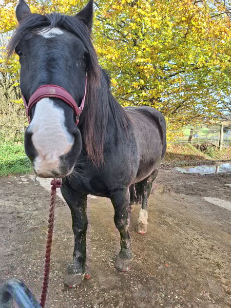I am offering my 2017 Noriker gelding for sale due to my reuma condition. Socke has a height of 172 cm and weighs approximately 877 kg. He is more of a sporty type. Socke has a bit of a stubborn streak, and if he doesn’t want to do something, he simply won’t. Currently, Socke is wearing Duplo bandages on his legs because he tends to develop hoof abscesses on our gravel paths. He is a PSSM carrier, and we have managed his diet accordingly, so far he shows no issues. He is familiar with both English and Western riding styles. He has a small, benign growth that, according to the veterinarian, is just a cosmetic mark. Socke is confident and fearless when ridden alone or in a group, especially in the terrain, but he requires a consistent hand. He is willing to load onto the trailer when there’s no rush. However, every time we try to load him, he protests and refuses to get on. This means that either you need to be patient and flexible with timing, or you should be prepared to ride him to his new home. Socke is located between Remscheid and Hückeswagen. Please note that this is not an emergency sale.