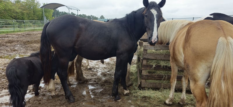 Mailo ist ein Norikerhengst, er ist am 28.03.2024 Geboren. Sein Vater ist Müller Diamant, er hat volle Papiere. Aktuell hat Mailo ein Stockmaß von 1,53m. Er ist regelmäßig Geimpf und Entwurmt worden. Er stand bei einem Händler in Österreich, seine Zukunft war dort ungewiss. Bei mir ist er seit November 2024. Seit dem hat er sich sehr gut entwickelt. Das Fohlen ABC kann er. Man kann ihn überall anfassen und Putzen. Beim Hufe geben tut er sich noch schwer, mit dem Gleichgewicht. Mailo ist ein liebevoller Büffel, der auch mal seine Grenzen testet. Er wächst im Offenstall mit gleichaltrigen und Erwachsenen Pferden auf. Im neuen Zuhause sollten Pferde zum Spielen sein, das tut er sehr gerne. Ich verkaufe ihn aus Zeitgründen. Damals ging es um sein Leben, deshalb habe ich ihn genommen. Mailo hat eine OP Versicherung, diese kann gerne mit übernommen werden. Er wird nur an einen 5* zuhause verkauft. Händler haben keine Chance