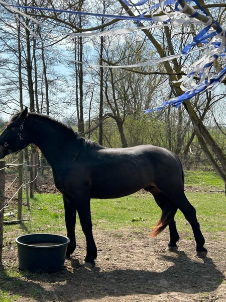 Ventus is a very peaceful stallion; he has previously been housed next to a mare and has grown up only separated by an electric fence from other mares. He is very affectionate, knows how to stand alone, and is also accustomed to going for walks by himself. He is very gentle with the veterinarian and has had no negative experiences so far. Currently, he only has one testicle, which descended only a year ago, so quite late. As he is still in development, he has, of course, not been ridden yet, but he is familiar with groundwork, etc. He is built rather sportily for his breed, making him a good all-rounder. Due to health reasons, I will not be able to care for him in the coming years, and it is rather difficult to find someone who is knowledgeable about the breed, so I have decided to let him go. I have had him since he was 7 months old. This is not an urgent sale; he will not be sold as a workhorse.