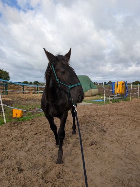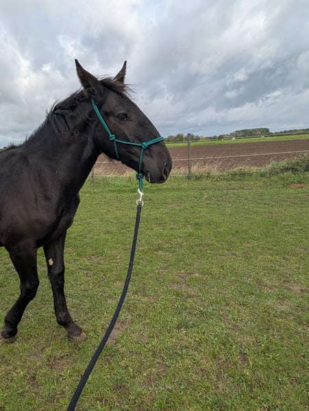 Our young Noriker "Cody" was rescued from slaughter in Austria this October. He is friendly, open-minded, and curious. He is people-oriented, shows respect in handling (although still a bit clumsy), and enjoys the company of both humans and animals. Character: loving, social, attentive, and eager to learn. No vices. Type: athletic Noriker – strong but elegantly built. Familiar with: dogs and children. Special feature: He must stay with us until spring, as his foal friend needs a playmate until then. He will also be gelded and can then move to his new home. We are looking for a suitable, horse-friendly home for him, where he will continue to be lovingly supported and cared for, so that we can rescue foals from slaughter again next year.