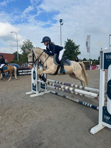Cute sport pony for sale – Coolblue (1.35 m) 💙 Coolblue is an energetic and reliable C-pony with a heart of gold. He easily jumps courses up to 80 cm (B/L level) and does so with great enthusiasm! A wonderful riding pony for a child eager to develop further in the sport. We are selling him because our daughter has outgrown him. Well-behaved, easy to handle at competitions, and loved by everyone! 🐴✨
