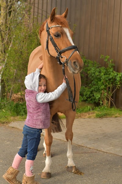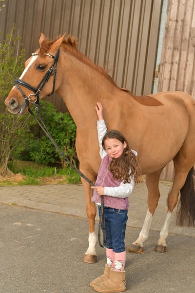 ** Traum-Sportpony der Extraklasse** ✨ **Entdecken Sie Ihr neues Turnierpony!** ✨ Wir präsentieren Ihnen eine außergewöhnliche Ponystute, geboren 2012, die in jeder Hinsicht begeistert! Mit ihrer eleganten Erscheinung und ihrem vorbildlichen Charakter ist sie das perfekte Pony für den Einstieg in die Turnierwelt. **Highlights:** - **Springtalent:** Bis 1,10 m erfolgreich gesprungen. - **Dressur:** Außergewöhnlich gut geritten, absolut leichtrittig – ideal für kleine Reiterinnen! - **Einfach zu händeln:** Läuft leicht an Zügel, kann sowohl mit als auch ohne Ausbinder geritten werden. - **Umgang:** Brav in der Abteilung und sehr zuverlässig, perfekt für junge Mädchen. Wenn Sie auf der Suche nach einem passenden Turnierpony sind, sind Sie hier genau richtig! **Besonderes Angebot:** Bei sofortiger Mitnahme erhalten Sie 5 % Rabatt auf den Verkaufspreis! 🎉 **Testmöglichkeit:** Überzeugen Sie sich selbst! Wir bieten Ihnen die Möglichkeit, dieses wunderbare Pony eine Woche lang bei uns zu testen. Diese Probewoche kann von erfahrenen Trainern begleitet werden, und Sie haben die Option, Unterricht in Kombination mit dem Testen zu buchen. Bitte beachten Sie, dass hierfür eine Probegebühr anfällt, die nicht vom Kaufpreis abgezogen wird. **Probereiten:** Gerne können Sie das Pony bei uns anschauen. Die Kosten für das Vorreiten oder Vorführen betragen 30 € pro Person. Lassen Sie sich diese Gelegenheit nicht entgehen und vereinbaren Sie jetzt einen Termin! Ihr Traumpony wartet auf Sie! 🐴💖