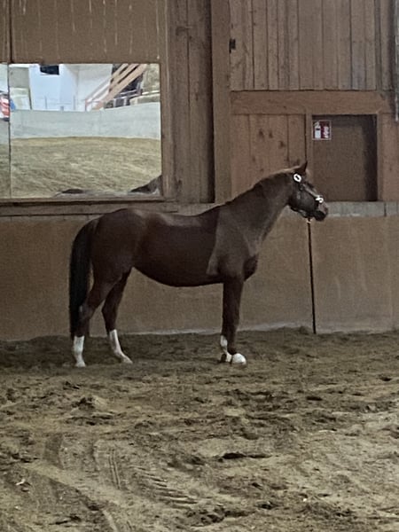 Verkaufe elegante NRPS-Stute, geb. 2009, in schönem Fuchsfell. Mit ihrem kompakten Stockmaß von 142 cm ist sie perfekt für ambitionierte Reiter, die eine zuverlässige Dressurpartnerin suchen. Die gut gerittene Stute überzeugt durch ihre angenehme Grundausstrahlung und ihre Bereitschaft, sich im Viereck zu präsentieren. Sie ist vielseitig im Dressursport einsetzbar und zeigt stets eine positive Einstellung unter dem Reiter. Eine schöne Gelegenheit für Reiter, die eine talentierte und gut erzogene Partnerin für den Turnierreitsport oder das Freizeitreiten suchen.