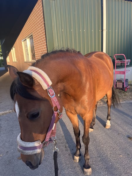 Due to moving abroad, I unfortunately have to sell my beloved pony Ayla. Ayla is a 4-year-old NRPS pony with lots of energy and a friendly, playful, and very sweet personality. She loves attention and is highly eager to learn. With Ayla, you can build a very strong bond. Once she trusts you, she truly does everything for you. Ayla responds very kindly to children. My little sister, who is 7, often helps care for her, and Ayla behaves very well. She knows to be more cautious and calm around small children. She has been ridden a few times and was incredibly well-behaved. Because she is still young and eager to learn, Ayla currently needs a rider with experience who can further guide her. Thanks to her lovely character and reliable nature, I also see her as a good children's pony. Ayla has a lot of energy, excellent stamina, and a strong work ethic, which makes me believe she will do very well in sport. She is highly intelligent and learns very quickly. She will likely grow into a versatile all-round pony suitable for many disciplines. Before starting under saddle, I worked with her on groundwork for nine months, so she responds well to voice commands and body language. She enjoys working with people. Ayla was fully vetted (clinical and radiological) 10 months ago and was last checked by the dentist at the end of October, so she is completely ready for a new start with her new owner. Ayla is outside during the day and stabled at night. She is sold with all her belongings, including: - A well-fitting Euroriding Jade dressage saddle - A bridle with a leather noseband - Equestrian Stockholm saddle pads - Various Bucas blankets Everything is included in the price. The price is negotiable for a loving home where Ayla will receive the attention and love she deserves. Inspection is, of course, possible; costs to be borne by the buyer. For questions or to express interest, please feel free to call or WhatsApp me at 0629182596.