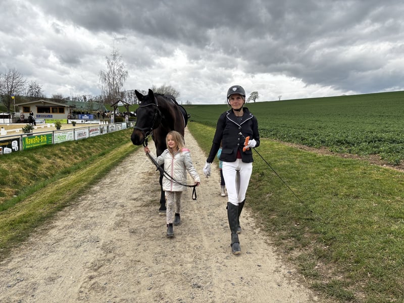 Boccaccio ist ein Wallach mit Ausdruck. Er ist freundlich, möchte gefordert und gefördert werden. Auf seinem ersten Turnier zeigte er sich völlig unerschrocken. Die verschiedenen Reize ließen ihn unbeeindruckt. Dies ist in beigefügtem Video zu sehen. Boccaccio möchte gefallen. Er lässt sich im Allgemeinen wunderbar ohne Kraft reiten und arbeitet stets gut mit. Jetzt ist er auf Anfang-L-Niveau ausgebildet, hat aber noch deutlich Potenzial nach oben. Mit mehr Turniererfahrung werden ihn seine wunderbaren Gänge zu einem Zuschauermagneten im Dressurviereck machen. Über den Winter hatte er eine Trainingspause. Seit Januar wird er konsequent wieder aufgebaut. Viel Gelassenheitstraining, Ausritte und klassische Dressurübungen haben ihn bereits zu einem verlässlichen Pferd werden lassen. Dennoch ist er kein Anfängerpferd. Er braucht sichere Reiter, die ihn beschäftigen können und selbst in neuen Situationen ruhig bleiben.