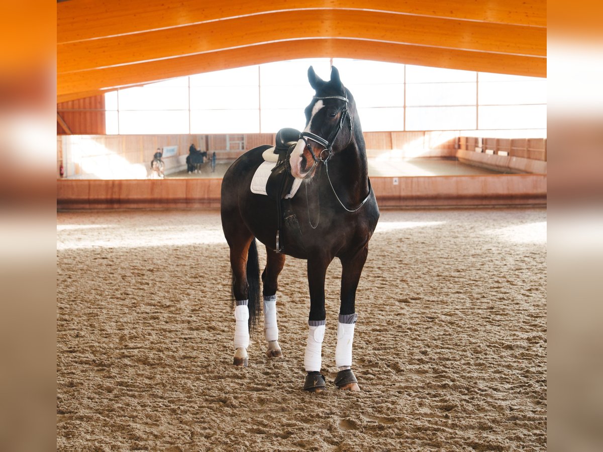 This gelding impresses with his very gentle temperament and is exceptionally well-behaved in daily handling. He is consistently reliable and straightforward in the stable, during grooming, and in everyday training. Under saddle, he always appears motivated and eager to work. His above-average basic gaits set him apart and provide a very solid foundation for dressage competition. The gelding already has competition experience and has successfully placed in dressage riding horse tests at the L level, including a 2nd place with qualification for the Bundeschampionat, with a score of 8.1 WN. The asking price does not reflect the horse’s quality, as a veterinary-clear diagnosis has been established and is manageable. Therefore, this horse is especially suitable for riders seeking a high-quality horse with a sportive training background at a reduced price. Further information will be gladly provided upon serious interest. Phone: 0175 9160993 (18:00 – 20:00)