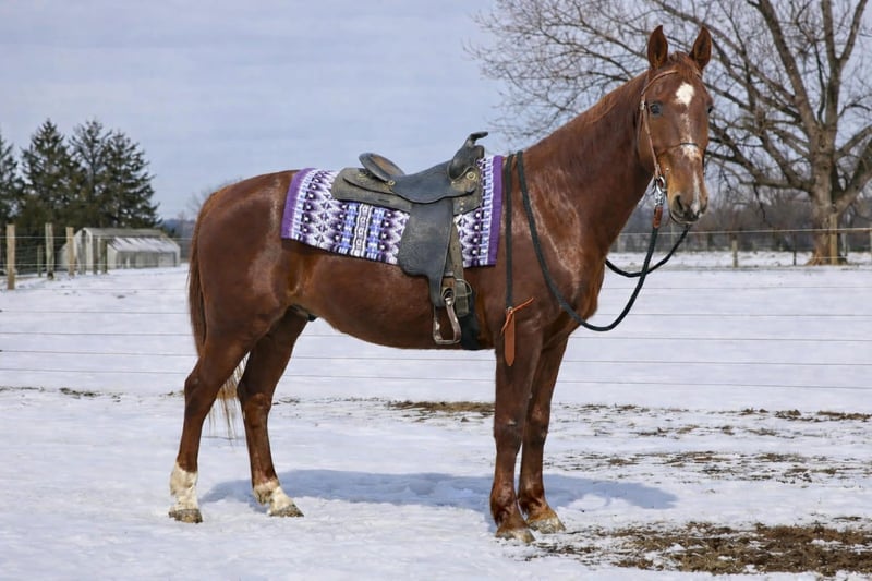 "AVAILABLE ON ONLINE HORSE AUCTION AT www DOT MagicHorseAuction DOT com BIDDING OPEN NOW thru TUESDAY | MARCH 17TH! BUY IT NOW AVAILABLE! *Final price will be determined on auction site* CONSIGNOR CONTACT INFO:Sarah Collins #419-822-7526 LOCATION:Walbridge OH" "King is a stunning 15.3 hand Oldenburg Cross gelding with a wonderful mind and an exceptional foundation. He had the same owner his entire life until recently and came from a family who started him correctly and gave him phenomenal care. King has been exposed to all aspects of farm life including livestock, traffic, and equipment. He is 100% traffic safe and also drives. This handsome gelding will go anywhere you point him. He confidently rides out alone on the trail, goes around the block, and easily crosses water, bridges, and logs. King maintains whatever speed you ask of him and truly enjoys having a job, with the stamina to go for hours. He is suitable for beginners and experienced riders alike. King rides soft in the face in a snaffle and bends nicely. He is calm, sensible, and even carries an umbrella without hesitation. In the video the gentleman riding King is his first time ever riding a horse! King is a true family horse suited for many jobs and will provide years of enjoyment. Highlights: • Drives and rides • Trail rides alone or with others • Crosses water, bridges, and logs • 100% traffic safe • Carries an umbrella • Loads, ties, and bathes well • Stalls quietly with zero bad habits • Turnout friendly (alone or mixed herd) King is 100% sound and healthy with vet records dated 3-2-26. His Coggins, vaccines, and worming are all up to date. King tends to bond closely with the person who spends the most time with him. 📍 Located in Ohio 📞 Contact Sarah: 419-822-7526 🚚 Transport can be arranged anywhere in the U.S. "
