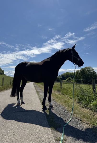 With a heavy heart, I am offering my Oldenburg dark bay gelding Denegro for sale. Born in 2015, approximately 16.1 hh, a handsome, modern type with a very pleasant temperament and a clear head. Denegro has been in my possession for 7 years and has always been an absolutely reliable and uncomplicated partner during this time. He impresses with his friendly nature, calmness, and rideability. In daily handling, he is well-behaved and straightforward. Farrier work, loading, and regular stable routines are second nature to him. He remains calm and cooperative even in new situations. Under saddle, Denegro is motivated and pleasant to ride. He has solid basic gaits and is a horse that aims to please his rider. His balanced nature is particularly noteworthy – a true partner for everyday riding. He also proves to be very reliable and calm in the field (known from hacks and holidays). A recent pre-purchase examination including X-rays (valid until 2026) is available. An incidental finding was a healed osteochondral lesion in the left hock; the right side is unremarkable. Clinically, Denegro was sound, free of lameness, and in regular trot during the examination. Over the past 7 years, he has always been healthy and has never been lame. I am happy to provide the full documentation of the pre-purchase exam including X-ray images upon serious interest. The finding has already been factored into the price. Denegro will only be placed in suitable and responsible hands, as a good home is very important to me. Known pedigree: Sire is the KWPN stallion Negro (international success in dressage). No official registration has been made. Denegro can be found on Rimondo under “Denegro 3”. Competition experience is available (including 2022 and 2025). 💰 Price: €10,500 negotiable 📍 Trial rides possible 📞 For more information, please contact me by phone 👉 A fee of €30 will be charged for a trial ride, which will be deducted from the purchase price if the horse is sold. Thank you for your understanding, as this helps prevent riding tourism. 👉 Saddle and additional tack can be taken over as part of the sale. 👉 No sale to dealers. Quality over price.