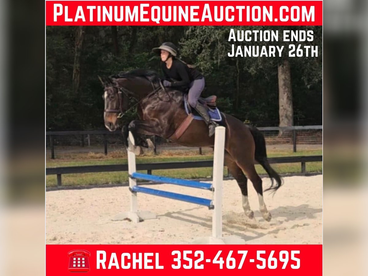 ONLINE AUCTION Place your bids at www.PlatinumEquineAuction.com Starting Bid $3500 Auction ends January 26th, 2025 Need a new saddle? Check out White Rock Saddles on our website or Facebook! Introducing the stunning 10yr 16.3h Warmblood gelding Raphael! Rotspon x Rubin Cortes x Karon Raphael is a Premium GOV Oldenburg lifetime registered with USHJA and USDF. Raphael is trained through 2nd level dressage and jumps around a 2’6″ course with scope for higher. He jumps cross country, trail rides, and works cows. He is a nice all-around type. His perfect rider would be an intermediate or advanced teen or AA looking for a horse to move up the levels in eventing or H/J. Raphael loves jumping! It is his favorite discipline. He has a smooth easy jump that is nice for riders that are new to jumping and still learning. He keeps an even pace around a course and maintains the same speed before and after each jump. He is tolerant and forgiving over fences and doesn’t mind if the rider can’t see a distance, chips, or sits back too early. He is the same to jump whether you ride every day or once a week. Although Raphael would prefer a rider who will spend every day at the barn doting on him. He loves attention and has a big personality. Raphael regularly hauls off-site for lessons and other riding activities. He is easy to haul and doesn’t mind traffic, construction, or dogs running underfoot. Raphael is a barefoot easy keeper and is up-to-date on shots, Coggins, deworming, sheath cleaning, hoof trimming, and floating. Please watch his video and call Show Me Sport Horses Rachel 352-467-5695 with any questions. Video shows multiple riders new to jumping taking him around a course (to show how saintly he is with riders learning to jump that make mistakes) as well as several off-site dressage lessons (to show how nice he rides in a new location). Raphael is offered with no reserve as we are selling our farm and need to downsize a few of the horses. Located in Ocala, FL, shipping available anywhere in the US or Canada. ONLINE AUCTION Place your bids at www.PlatinumEquineAuction.com Starting Bid $3500 Auction ends January 26th, 2025 Need a new saddle? Check out White Rock Saddles on our website or Facebook!
