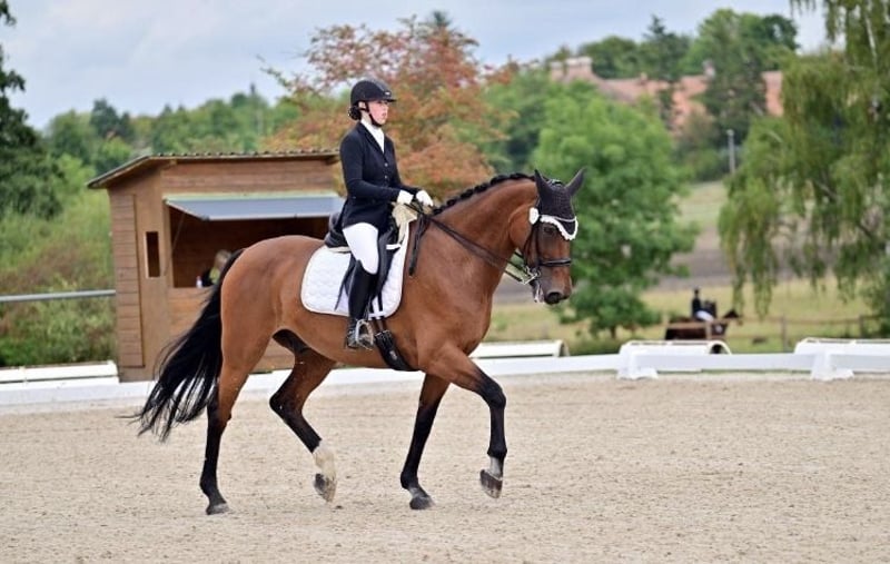 Encore élevé par le éleveur, choyé et soigneusement formé, « Dreamy » se montre toujours respectueux lors du travail à cheval, se déplace de manière fiable en solo ou en groupe en extérieur, et saute volontiers un petit parcours. « Dreamy » se comporte également bien en compétition, se laisse monter avec calme et se manipule facilement. Son niveau de dressage est actuellement au niveau M en formation ; il a déjà participé à des épreuves de dressage de niveau M. Avec sa prestance élégante, il constitue le partenaire idéal pour tout cavalier ou cavalière ambitieux(se), même dans le domaine du loisir haut de gamme. Il est bien manié, travailleur lors du travail à cheval et connaît la longe, le paddock et le pré. Il est actuellement en formation avec une cavalière de 17 ans, en collaboration avec sa coach de succès, dans le cadre d’un programme de perfectionnement. Si vous recherchez un cheval de dressage ou de saut talentueux et expérimenté, qui convainc aussi bien en carrière qu’au quotidien, et avec lequel vous prendrez beaucoup de plaisir, il pourrait être le cheval qu’il vous faut. Une assurance pour les frais d’opération peut être souscrite sans délai de carence. De plus, en tant qu’éleveur, nous offrons à ce cheval adulte, après sa carrière sportive, une place à vie. L’échange contre une jument ou un jeune cheval, même difficile, avec une origine intéressante en dressage ou saut d’obstacles, est envisageable. Pour plus d’informations ou pour organiser une visite, nous vous invitons à nous contacter. Veuillez privilégier les messages écrits ou vocaux uniquement au numéro de téléphone 0171… Nous vous accompagnons de manière complète et professionnelle lors de la séance d’essai.