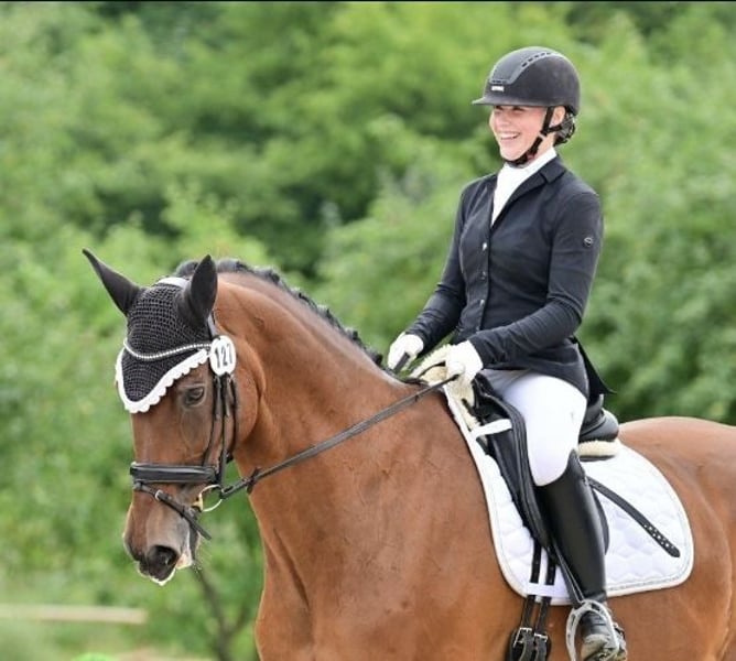 Noch vom Züchter, behütet aufgewachsen und sorgfältig ausgebildet ist „Dreamy“ stets anständig beim Reiten, geht zuverlässig alleine oder in der Gruppe ins Gelände und springt auch gerne einen kleinen Parcours. „Dreamy“ ist auch auf Turnier brav, lässt sich entspannt reiten und super händeln. Dressur Ausbildungsstand ist M im Training; ist M Dressur gegangen. Mit seinem eleganten Auftreten ist er der ideale Partner für jede/n ambitionierte/n Reiter/in, auch im gehobenen Freizeitbereich. Er ist brav im Handling, fleißig beim Reiten und kennt Führanlage, Paddock, Koppel. Zur Zeit wird er von einer 17 jährigen Reiterin in Kooperation mit ihrer S** erfolgreichen Tranerin weiter ausgebildet. Wenn Sie auf der Suche nach einem talentierten und erfahrenen Reitpferd sind, das sowohl im Viereck als auch im täglichen Umgang überzeugt und mit dem Sie viel Freude haben werden, dann könnte er genau der Richtige für Sie sein. Die OPKostenversicherung kann ohne Wartezeit übernommen werden. Darüberhinaus bieten wir als Züchter diesem volljährigen Pferd nach dem Ausscheiden aus den Sport einen Platz auf Lebenszeit. Die Inzahlungnahme einer Stute oder eines jungen auch schwierigen Pferdes mit interessanter Dressur- oder Springabstammung ist möglich. Für weitere Informationen und zur Vereinbarung eines Besichtigungstermins freuen wir uns auf Ihre Kontaktaufnahme; Text-/Sprachrichten bitte ausschließlich auf Tel.nr. 0171… Wir beraten und betreuen Sie umfassend und professionell beim Probereiten.