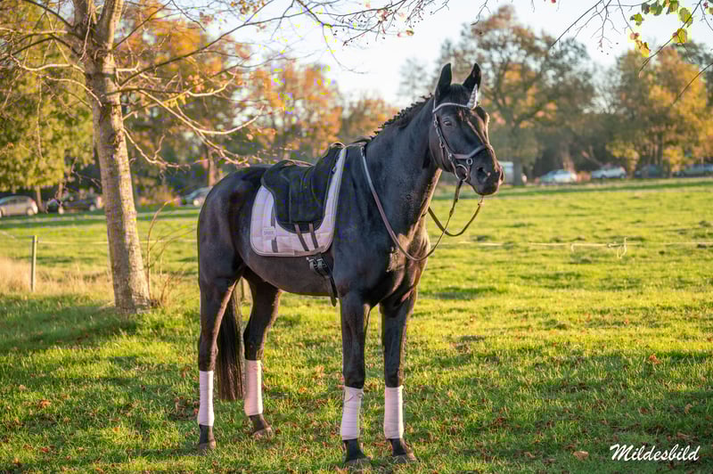 Hallo zusammen, schweren Herzens und aufgrund gesundheitlicher Gründe meinerseits muss ich mich von meinem 15- jährigen Oldenburger Wallach Salentino trennen. Seit Juni 2021 sind wir ein Team gewesen, waren in der Dressur, aber auch im Springen und in der Vielseitigkeit unterwegs bis wir mit ihm im Dezember 2022 in der Klinik waren und dort 2 Befunde bei rausgekommen sind. (Bei Interesse gebe ich alle Informationen raus, Röntgenbilder sind vorhanden. ) Ich habe ihn daraufhin aus dem Sport genommen. Seit dem Umzug im September 2023 in einem großen Offenstall hatte er mit keinen seiner Befunde mehr Probleme oder Auffälligkeiten. Seit letztem Jahr ist er wieder antrainiert und kann somit auch Probegeritten werden. Er wurde regelmäßig geimpft, entwurmt, beim Hufschmied und Zahnarzt vorgestellt. Salentino ist 1,72m groß. Wir wünschen uns ein zu Hause für ihn, in dem er genauso geliebt und umsorgt wird wie bei uns. Er möchte gerne betüddelt werden, genießt die volle Aufmerksamkeit, kleine Spaziergänge, lockere Einheiten an der Longe / unter dem Sattel oder mal ein entspannter Ausritt im Gelände. Er ist definitiv KEIN Pferd mehr für Turniere und den Sport, sondern ein Freizeitpferd auf dessen Befunde einfühlsam eingegangen werden muss. Lehrgänge, Unterricht und auch Springstunden sind aber grundsätzlich möglich🤗 Seit Oktober 2023 steht er in einem großen Offenstall mit einer reinen Wallachherde und er wird auch nur in solch eine Haltung abgegeben. Ich möchte das beste zu Hause für ihn finden, wo er noch einige Jahre betüddelt und gepflegt wird, wo mit ihm sorgsam und pfleglich umgegangen wird. Er ist im Umgang ein wahrer Schatz, sehr personenbezogen, aufmerksam, verschmust, neugierig, dennoch sehr sensibel und zeigt klar an, wenn ihm etwas fehlt oder ihm etwas nicht passt. In dem aktuellen Stall wird er ab und zu von ein paar jüngeren Mädchen umsorgt, welche ihn ab und zu auf Schrittausritte mitnehmen, betüddeln und umsorgen, welches er mit Bravour meistert. Dennoch ist er umweltorientiert und braucht eine sichere Führung. Es gibt noch so viel mehr schönes zu Salentino zu erzählen. Sollte Salentino euch ansprechen, dann kommt doch gerne vorbei, schaut ihn euch an & ich werde noch weiteres über ihn erzählen. Sein gesamtes Zubehör wie Sattel, Trense, Decken, etc. können zusätzlich erworben werden. Sollten noch weitere Fragen aufkommen, gerne anschreiben oder anrufen (Abends ab 17 Uhr) Liebe Grüße und vielleicht bis bald! Ann-Kathrin und Salentino