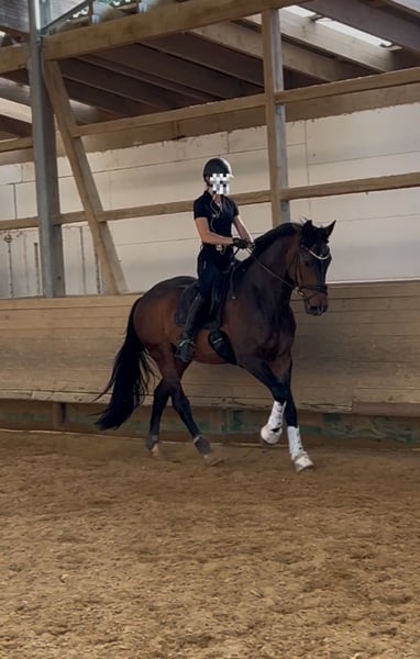 Aus privaten Gründen verkaufe ich mein Herzenspferd. D. ist ein 17 Jähriger Oldenburger Dressur Wallach mit einem Herz aus Gold. Es handelt sich hierbei nicht um einen Notverkauf, daher Platz vor Preis und nur in die allerbesten Hände abzugeben. Ausbildungsstand Dressur: M Springen: kein Springpferd, jedoch meistert er kleinere Sprünge / Parcours sicher und mit Spaß, auch wenn es mal nicht 100% passt bleibt er entspannt. Gelände: absolut Gelände sicher, neue Situationen schätzt er klar ein und meistert diese mutig und vernünftig Aktuelle Videos, die seine Qualität und sein Vermögen zeigen, sende ich auf Anfrage gerne zu (geritten von einer anderen Person, daher aus Datenschutzgründen nicht öffentlich). Abstammung: tbd Charakter: Verträglich mit anderen Pferden (Koppel, Paddock etc.), entspannt, zugewandt, kommunikativ, wird gerne gekraul. Mutig, immer leistungsbereit, möchte dem Reiter gefallen. Sonstiges: Spaziergänge im Freien kennt er Laufband und Führmaschine bekannt Paddockhaltung bekannt Koppel führen anständig Kleinere Turniere kennt er und geht gelassen mit unbekannten Gegebenheiten um. Er wird aktuell ambitioniert geritten und ist voll im Training. Er ist brav im täglichen Umgang, schmiede- und verladefromm. TÜV: nicht vorhanden, AKU vor 3 Jahren altersgemäß oB, seither keine Verletzungen oder sonstige Schäden bekannt Impfungen aktuell, regelmäßig entwurmt Ausrüstung nicht im Preis inbegriffen, kann optional dazu erworben werden. Alles in sehr guten fast neuwertigen Zustand (Sattel, Trensen, Decken, Schermaschinen usw.). Für das Probereiten veranschlage ich 30€, dies wird beim Kauf selbstverständlich verrechnet. Keine Händler, kein Schulbetrieb Standort: 73642 Welzheim Baden-Württemberg