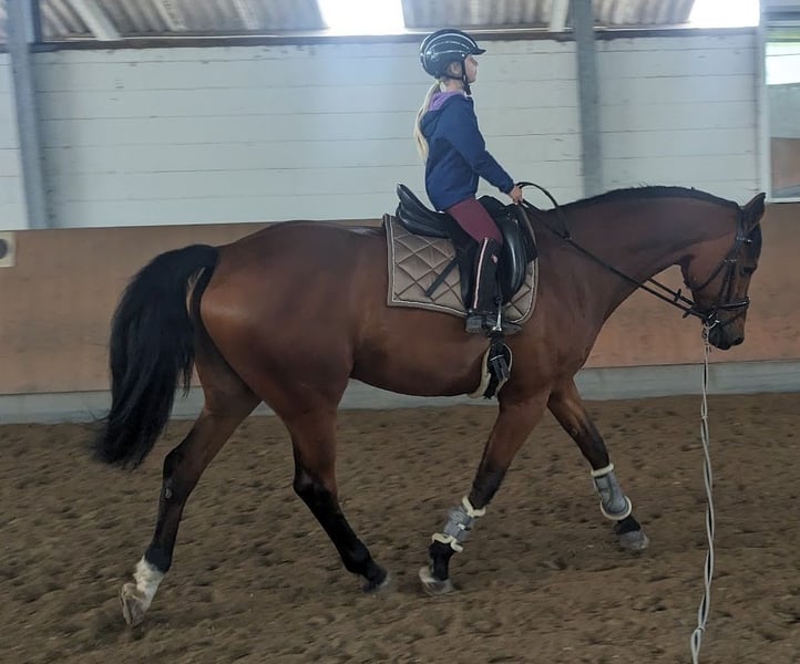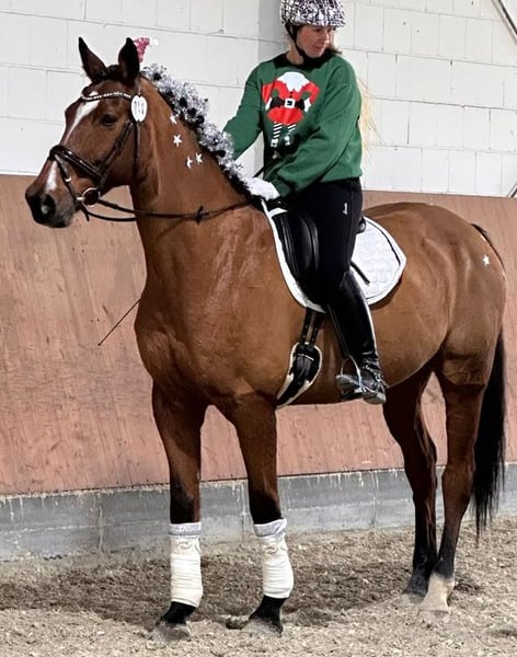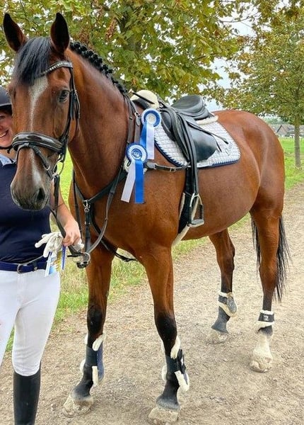 Zum Verkauf steht mein 17- jähriger Oldenburger Wallach. Unter dem Sattel ist er artig und unerschrocken – egal ob in der Halle, auf dem Platz oder im Gelände. Auch auf dem Turnier lässt er sich nicht so schnell aus der Ruhe bringen und ist stets gelassen. Daher auch für Kinder/Jugendliche als Lehrpferd geeignet. Meine 8 Jährige Tochter reitet Ihn alleine in allen drei Gangarten. Video kann auf Wunsch versendet werden. Er ist ein treuer Kumpel und toller Partner an der Seite seines Reiters. Ausbildung & Potenzial: Louis läuft dressurmäßig auf einem guten A-Niveau und zeigt sich dort brav, leichtrittig an der Hand und ist sehr sitzbequem. Unser Schwerpunkt war bis jetzt das Springen (bis M), was er jedoch nicht mehr in der Höhe machen sollte. Er liebt es im Gelände unterwegs zu sein und ist auch im unbekannten Gelände immer artig. Charakter & Umgang: Er ist brav beim Schmied, verladefromm und unkompliziert beim Tierarzt. Weiterhin ist unkompliziert in der Herde und geht am liebsten jeder Auseinandersetzung aus dem Weg. Haltung: Er lebt zur Zeit in einer Paddockbox und geht zusätzlich tagsüber noch auf ein Sandpaddock mit Heuraufe. Reine Boxenhaltung ist nichts für Ihn und wird dahin auch nicht abgegeben. Da Louis eine leichte Allergie hat (Frühjahr/Sommer) ist es wichtig, dass er viel an der frischen Luft steht und auch regelmäßig bewegt wird. Ich könnte mir in sehr gut als treuen Begleiter im Freizeitbereich vorstellen oder auch als Lehrpferd für ein Kind/Jugendlichen der erste Turniererfahrungen sammeln möchte.