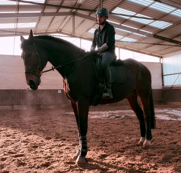 Te koop staat een 21-jarige donkerbruine ruin met een stokmaat van 1,80 m en een zeer betrouwbaar en eerlijk karakter. Hij toont zich absoluut braaf onder het zadel en in het terrein, beschikt over een zeer soepel zittende galop, ideaal voor beginners of minder ervaren ruiters. Tijdens buitenritten is hij een absoluut betrouwbaar paard dat niets uit zijn evenwicht brengt.
