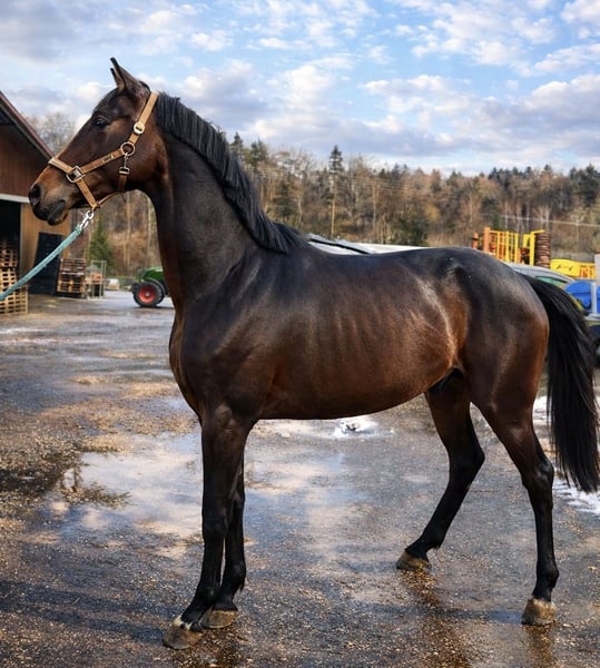 Étalon de dressage brun foncé – 3 ans – Élevé en propre À vendre, un impressionnant étalon de 3 ans, d’un élégant brun foncé, issu de notre propre élevage. Ce jeune espoir sportif allie génétique moderne en dressage, charisme, qualité et potentiel pour l’avenir. Issue de la souche de Morricone et Quaterman, réputés pour leur aptitude au dressage, il possède une excellente predisposition pour le haut niveau en dressage. Sa lignée maternelle est également marquée par le célèbre reproducteur Rohdiamant, ce qui rend cette lignée particulièrement intéressante. Ce sang de grande qualité garantit une origine de dressage de premier ordre, qui fait battre le cœur des éleveurs tout comme celui des cavaliers ambitieux, en leur offrant les meilleures perspectives sportives. Ce mâle se distingue par : • Un extérieur harmonieux et moderne • Un bon fondement et de bons pieds • Trois allures très bonnes avec une balance naturelle • Un tempérament intelligent et proche de l’homme • De solides bases pour une future formation en dressage • Un potentiel sportif et de reproduction intéressant grâce à une génétique précieuse et auto-produite Élevé en propre, il a été soigneusement préparé dès le début et connaît bien le contact avec l’humain. Il est confiant et sans peur. Un talent de dressage avec une origine convaincante et une perspective sportive claire – idéal pour tous ceux qui recherchent un jeune étalon de qualité, à former eux-mêmes ou à intégrer dans un projet de reproduction précieux.