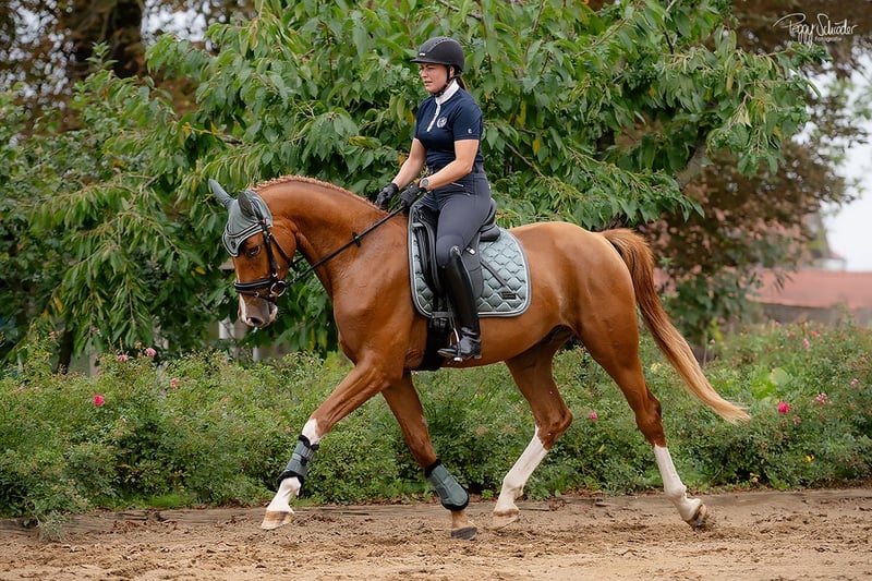 **Sales Advertisement: Oldenburg Gelding** For sale is a beautiful Oldenburg gelding, born in 2022. With his striking chestnut color and a height of 166 cm, he is not only an eye-catcher but also a promising talent for dressage. Skydancer is professionally started under saddle and comes directly from a dedicated breeding facility. This young gelding impresses with his quality of movement and friendly disposition. He is well-mannered, easy to handle, and is already showing initial progress in his training. Ideal for riders looking for a promising dressage horse and who enjoy working together. He is suitable for both amateur and ambitious riders and offers great potential for the future. If you are interested or have any further questions, please feel free to contact me. Viewings are possible by appointment. Don't miss this opportunity!