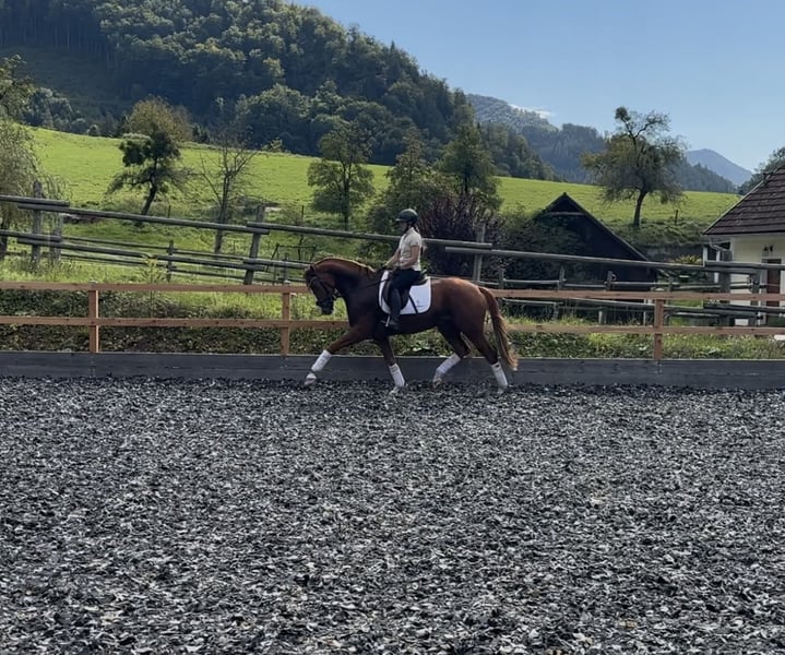 For sale: a promising Oldenburg gelding, born in 2022. The elegant chestnut impresses with his appealing appearance and harmonious conformation. Standing at 16.1 hh, he offers the perfect size for ambitious riders seeking a dressage horse. The young gelding is already well-started under saddle and demonstrates a promising basic training in dressage. His movements are precise, elastic, and expressive, making him an ideal partner for advanced dressage. With his friendly and approachable nature, he is easy to handle and shows great potential for further development. This Oldenburg is a genuine talent that, with the right support, will grow into a reliable partner. He is suitable for both experienced riders and young riders beginning their dressage journey. If you are interested, I look forward to your contact to introduce this promising dressage horse to you.