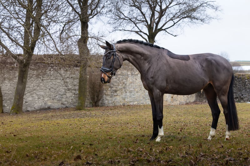 4 years old, approximately 16.1 hh, currently competing at the Basic Level of Dressage (Dressurpferde A). Sired by Infantino out of Don Index! He has three expressive basic gaits combined with a fantastic work ethic and willingness to learn. Calm and well-behaved both in handling and under saddle. A horse suitable for someone to bring along and develop further. He was lightly backed last summer and is currently performing confidently at Dressurpferde A level. A recent, clear X-ray report is available. Regularly vaccinated and wormed – directly from the breeder. Only for sale due to the owner’s health reasons, now in caring hands. For videos or further questions, please call me or send a WhatsApp message to: +49 151 14938417.