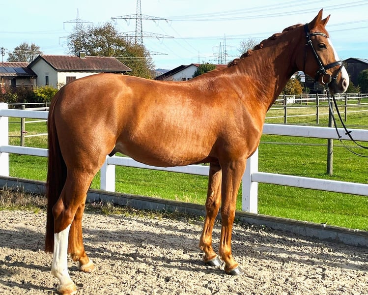 Verkaufe eleganten Oldenburger Wallach – ideal für ambitionierte Amateurreiter Dieser charmante Fuchs-Wallach wurde im Jahr 2021 geboren und beeindruckt durch sein freundliches Wesen sowie seine beeindruckende Erscheinung. Mit einem Stockmaß von 164 cm (Endmass ca. 67/68) bietet er die perfekte Größe für ambitionierte Reiter, die Wert auf Qualität und Charakter legen. Er hat ein top Pedigree. Grossmutter läuft aktuell S Dressur und zu dem gibt es aus der 3. Mutter zwei Olympiapferde. Sein ausgeprägtes Talent im Dressursport macht ihn zu einem vielversprechenden Partner für den nächsten Schritt in der Ausbildung. Der Oldenburger überzeugt durch seine gute Bewegungsqualität, Lernbereitschaft und sein angenehmes Temperament. Er will immer auf's neue gefallen und alles richtig machen. Bei Interesse oder für weitere Informationen stehe ich gerne zur Verfügung. Ein Kennenlernen lohnt sich!