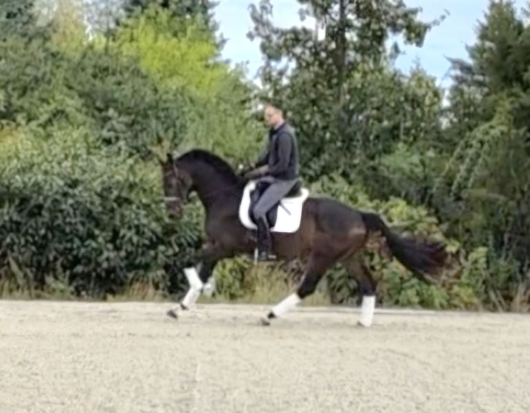 Zum Verkauf steht Bonegro, ein wunderschöner Oldenburger Wallach, geboren im Jahr 2021. Mit seinem eleganten, dunkelbraunen Fell und einem Stockmaß von 168 cm ist er ein echter Blickfang. Dieser talentierte Wallach zeigt großes Potenzial im Dressursport und ist bereit, weiter gefördert zu werden. Er überzeugt nicht nur durch seine lockeren Grundgangarten, sondern ist auch super brav, einfach zu reiten und hat eine hohe Lernbereitschaft. Er konnte sich nach kurzer Zeit schon in Dressurpferdeprüfungen der Klasse A plazieren und ist auf dem Turnier unkompliziert. Er eignet sich sowohl für den Freizeit- als auch für den Turniersport. Aus dem direkten Mutterstamm sind zahlreiche Pferde mit Amateuren im Dressursport der Klassen M und S erfolgreich. Bei Interesse oder für weitere Informationen stehe ich Ihnen gerne zur Verfügung. Video per WhatsApp. Lassen Sie sich diese Gelegenheit nicht entgehen, einen vielversprechenden und zuverlässigen Partner für die Zukunft zu finden!
