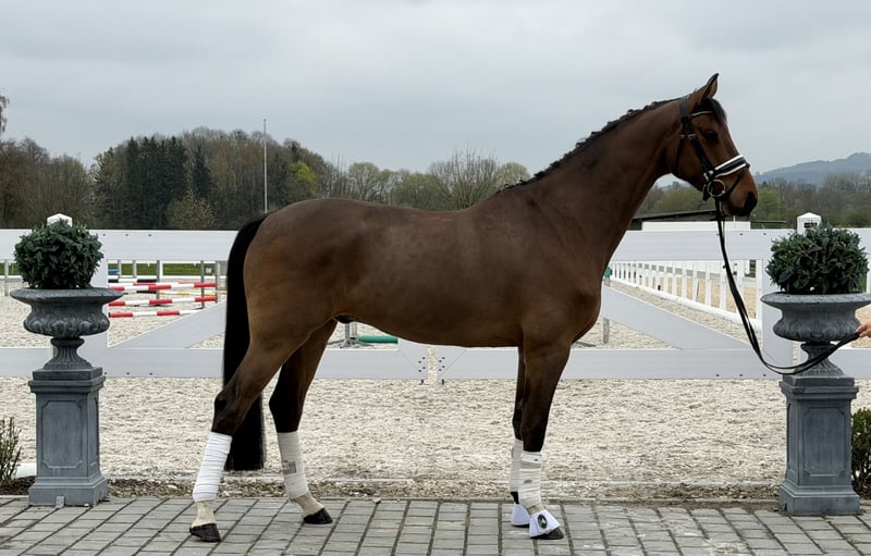 Verkaufe einen vielversprechenden Oldenburger Wallach, geboren im Jahr 2021. Der braune Nachwuchshengst überzeugt durch seine elegante Erscheinung und sein harmonisches Exterieur. Mit einem Stockmaß von 166 cm bietet er die ideale Größe für ambitionierte Reiter, die Wert auf Qualität und Potenzial legen. Der Wallach ist bereits schon sehr ordentlich ausgebildet .Sein angenehmer Charakter und seine gute Rittigkeit machen ihn zu einem zuverlässigen Partner . Dank seiner soliden Grundausbildung und seinem ausgeprägten Bewegungsfluss ist er bestens für den weiteren Aufbau im Dressursport geeignet. Ein Pferd mit viel Potenzial, das sowohl durch seine Erscheinung als auch durch sein Talent begeistert.