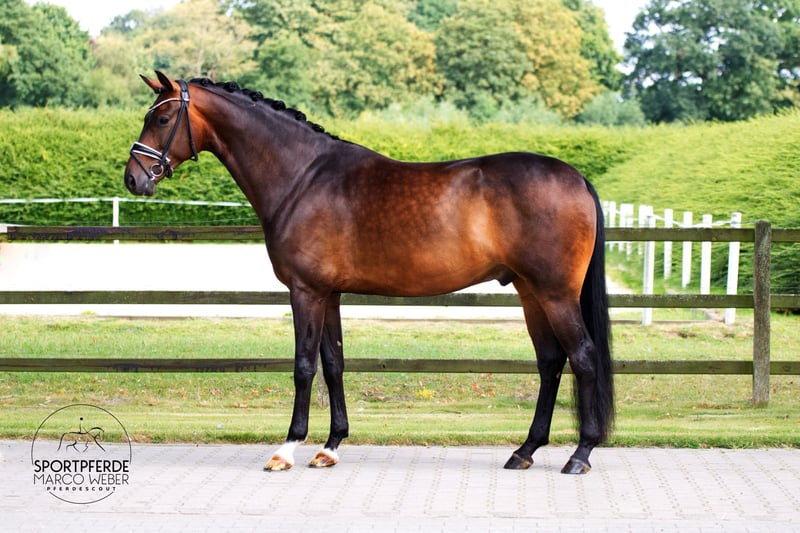 Oldenburger | Wałach | 2021 | około 1,68 m ⚜️ Viconte – Sunny Boy ⚜️ 💎 Marzenie każdego jeźdźca – wałach o wyjątkowej ujeżdżeniowej rzetelności i niepowtarzalnej aurze 💎 Ten średniej budowy, typowy syn Viconte zachwyca wyrazistym wyrazem twarzy, szlachetnym wyglądem i dużym stylem. Obecnie prezentuje się na solidnym poziomie konia sportowego, wyróżnia się trzema bardzo dobrymi chodem podstawowym i w codziennym treningu jest zawsze pracowity, zmotywowany i chętny do nauki. Jeszcze młody i od niedawna pod siodłem, stara się niczego nie zepsuć i każdego dnia pokazuje się z jak najlepszej strony. W typie jest poprawnie zbudowany, rozwinięty powyżej przeciętnej dla swojego wieku i posiada pożądany, ciemny umaszczenie. Jego charakter czyni go wyjątkowym partnerem: zawsze przyjazny, bezproblemowy i niezawodny w codziennym kontakcie. ➡️ Z dalszym wsparciem ma duży potencjał na karierę aż do dużej areny. ➡️ Fachowo wytrenowany, troskliwie pielęgnowany i jeszcze w rękach hodowcy. ✅ Aktualny, dobry certyfikat zdrowia wraz z badaniem grzbietu jest dostępny. 📍 Lokalizacja: Visbek 📞 Informacje pod numerem: +49 173 3013499