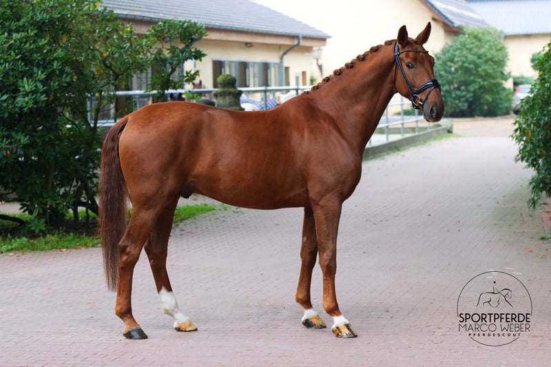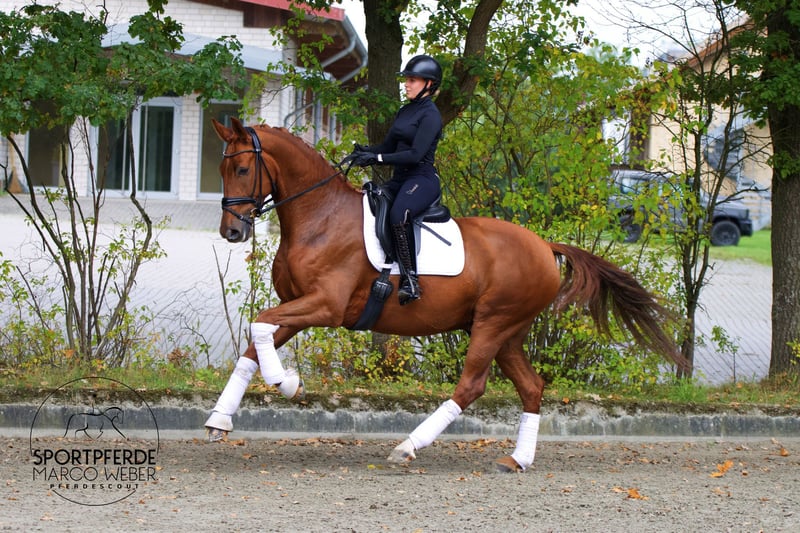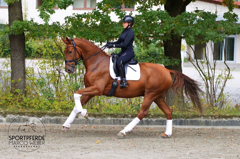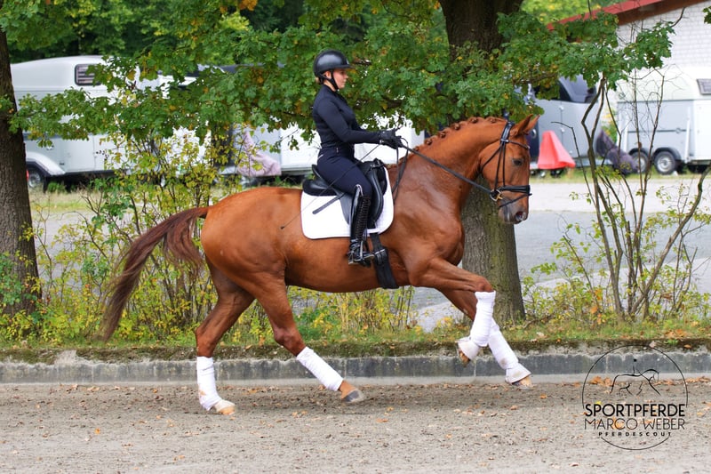 Oldenburg • Gelding • Born 2020 • 16.1 hh ⚜️ Best of Gold – Desperado ⚜️ 🎁 Attention, chestnut horse enthusiasts! 🎁 A beautifully conformed gelding by Best of Gold, impressing with his charm, presence, and an exceptionally good temperament. His honest, friendly nature makes him a completely reliable partner both in daily handling and under saddle – a true heart horse! 🏅 Winner in Dressage Horse Class A 🏅 Equipped with three very good basic gaits, excellent uphill tendency, and a superb work ethic. Well-built, correct conformation, and full of quality for the future. He brings joy to every ride – motivated, rideable, and always attentive to his rider. Thanks to his balanced nature, he is suitable for anyone – whether ambitious amateur, rider transitioning from another discipline, or professional. With further development, he has the potential for the big arena – a horse with perspective and heart! ❤️ A clear recommendation for those seeking an outstanding young dressage horse! 📍 Location: Near Osnabrück 📋 Good X-ray examination available 📞 For more information, please contact: +49 173 3013499