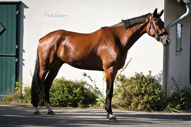Ce remarquable hongre Oldenburger de 4 ans impressionne déjà par sa prestance, combinant taille, présence et un caractère exceptionnellement amical. Avec une hauteur au garrot actuelle de 1,86 m, il ne passe pas inaperçu ! Fils du top étalon "Asgard’s Ibiza" et issu d’une lignée maternelle très solide, il possède toutes les qualités pour un avenir prometteur : Il possède un pas ample, un trot élastique et rythmique, ainsi qu’un galop déjà très équilibré et posé. Lors de l’entraînement, il se montre chaque jour motivé, coopératif et curieux d’apprendre. Le hongre a été élevé de manière saine, adaptée à ses besoins, et avec beaucoup de soin. Il est familiarisé avec la douche, la longe, le travail à la main, le travail léger sur barres, ainsi que des promenades tranquilles en extérieur. Il a été introduit de façon positive et sans stress dans l’environnement des concours et se laisse facilement charger. Actuellement, il évolue sur un niveau solide de dressage A, ayant encore fait de grands progrès ces dernières semaines, avec la mise en place progressive des épaules en dedans et des pirouettes. Il connaît le vétérinaire uniquement pour les soins dentaires et les vaccinations, ayant été régulièrement présenté en huforthopédie et en ostéopathie. Un bilan de santé complet datant de décembre 2023 est disponible. Ce hongre se distingue également par son caractère exceptionnel : Il est agréable à manipuler, très proche de l’humain, ouvert, toujours sincère, sociable avec ses congénères, et pour son jeune âge, d’un calme impressionnant. Un jeune cheval très prometteur, capable de briller en dressage, doté d’un tempérament qui en fait aussi un partenaire de vie idéal pour des amateurs ambitieux. Pour son développement futur, nous souhaitons qu’il bénéficie de mains expertes dans un environnement où il pourra bénéficier d’un mouvement suffisant et de contacts sociaux. Nous serions ravis de recevoir votre appel et pouvons vous envoyer des vidéos sur demande !