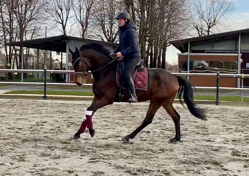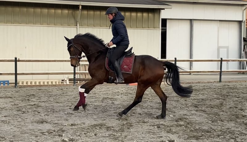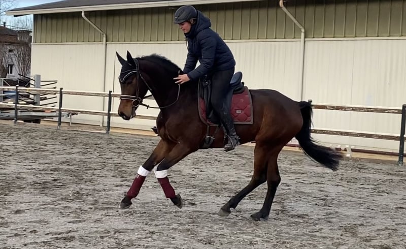Levino is a stunning 6-year-old, approximately 16.2 hh gelding. He is a brave and fearless horse who strives to please his rider. Levino possesses good basic gaits and brings great joy during daily work. He has also begun jumping training, demonstrating talent and quality, although he still needs further development. He loads calmly onto the trailer and is very easy to handle overall. Simply a very sweet horse. In his training, the gelding is still quite early in his development and therefore not suitable for absolute beginners. However, he is straightforward to handle and forgiving of rider mistakes. If you are looking for a true companion with whom you can grow together, Levino is the right choice.