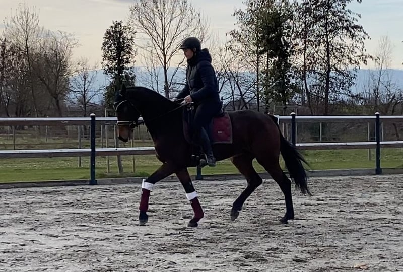 Levino ist ein bildschöner 6 jähriger ca 162 großer Wallach. Er ist ein mutiges und unerschrockenes Pferd, das seinem Reiter gefallen möchte. Levino ist mit guten Grundgangarten ausgestattet und macht bei der täglichen Arbeit sehr viel Freude. Das Springen wurde begonnen. Auch hier zeigt er Vermögen und Qualität, muss aber noch weiter gefördert werden. Er geht brav auf den Hänger und ist im gesamten Handling super simpel. Einfach ein sehr liebes Pferd. In seiner Ausbildung steht der Wallach noch ziemlich am Anfang und ist demnach für absolute Anfänger nicht geeignet. Dennoch ist er unkompliziert in der Bedienung und verzeiht Reiterfehler. Wer also einen echten Kumpel sucht, mit dem man zusammen wachsen kann, der ist bei Levino richtig. Pferd steht in Italien