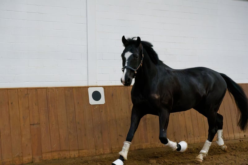 Er überzeugt durch sein harmonisches Exterieur und drei ansprechende Grundgangarten. Unter dem Sattel ist er aktuell auf A-Dressur-Niveau. Das Üben von einfachen Wechseln sowie Außengalopp gehört aber bereits auch schon zu seinem täglichen Training. Hierbei zeigt er sich sehr lernwillig und reagiert angenehm auf Stimmhilfen.