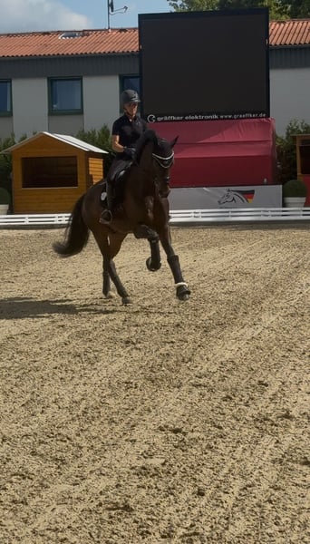 *Dance with Franz* This outstanding gelding by Fynch Hatton is available for sale. He demonstrates exceptional talent with great elasticity and a very good work ethic, qualities that are hard to find. With his charm and balanced temperament, he immediately wins everyone over. With a lot of elegance and above-average basic gaits, he makes every rider’s heart race. An excellent choice for championship riders as well as amateurs. He has won multiple classes in dressage horse classes A and L and has qualified for the 2025 Bundeschampionate. Currently, he has won dressage horse class M with a score of 8.1! Good X-ray images are available. If you are interested, I am happy to provide further information and arrange a viewing. Please contact me by phone or WhatsApp.