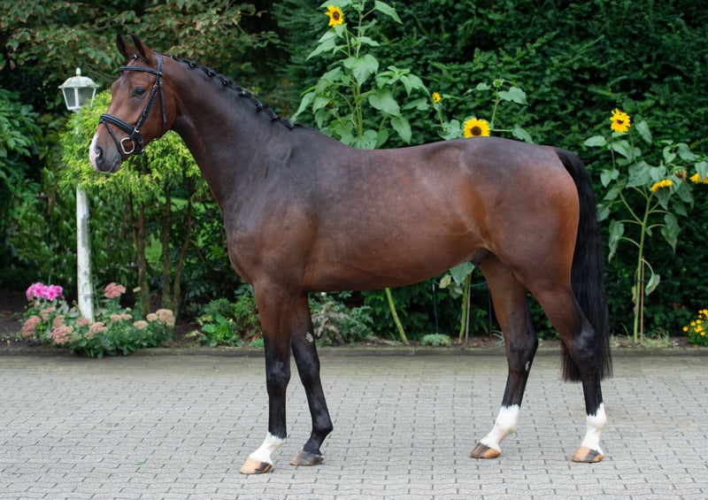 Alph is a harmonious gelding with plenty of go. His flowing movements through the body are characterized by rhythm, impulsion, and elasticity. Having been under saddle since mid-March 2025 and still in development, the gelding demonstrates a high level of willingness and rideability, which is already reflected in his sensitivity to rider aids. Due to his eagerness to learn, Alph is on his way to competing in A-level dressage. Progeny from this dam line are successful in both dressage and show jumping, not only in the youth and amateur classes but also up to the advanced level. X-ray examinations from 2024 show no findings.